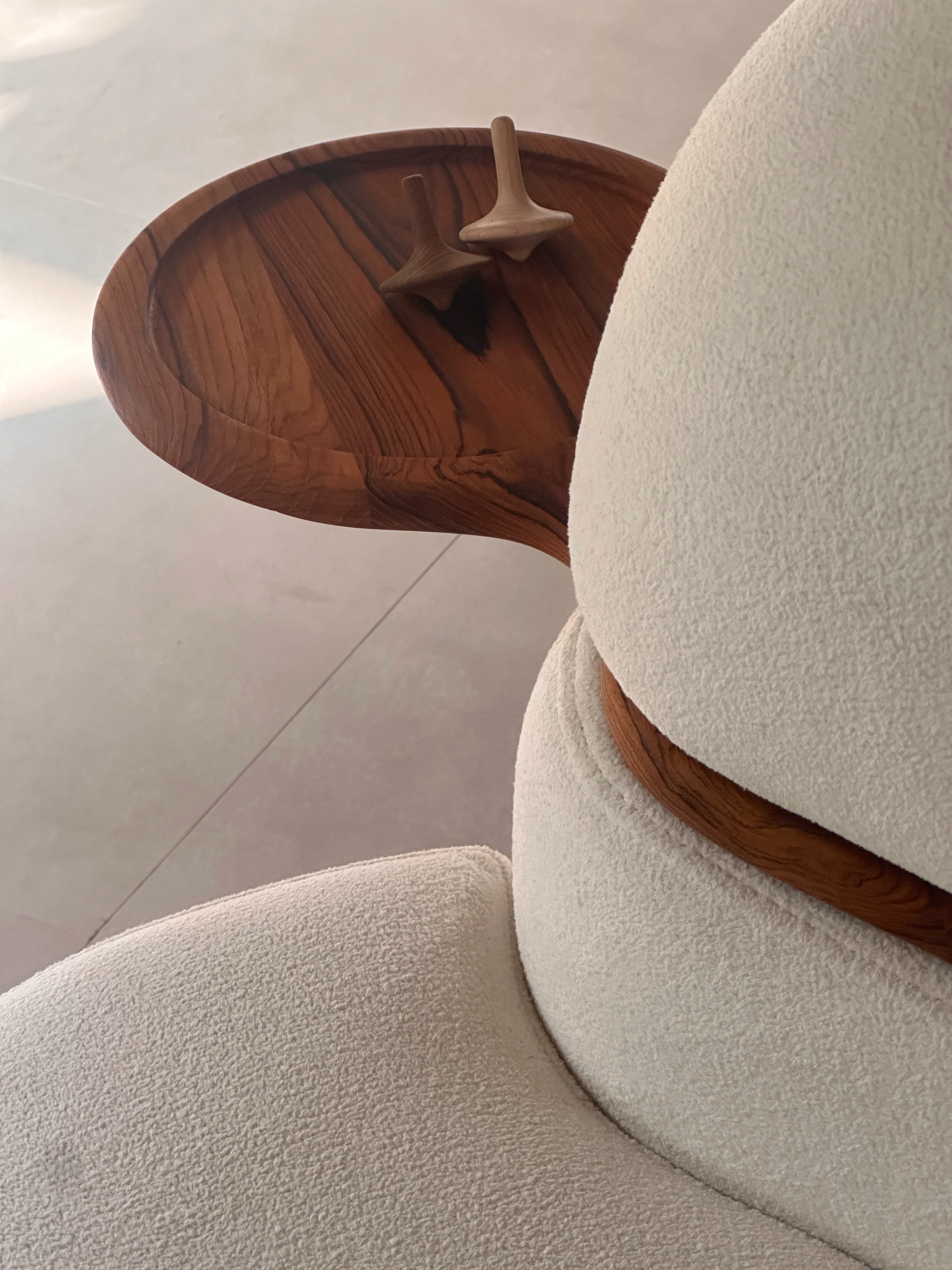 It embraces you softly, yet keeps you aware -much like the spinning toy it’s inspired by. The sofa becomes a companion for introspection: to sip tea, to think, to let the day unfold around you.